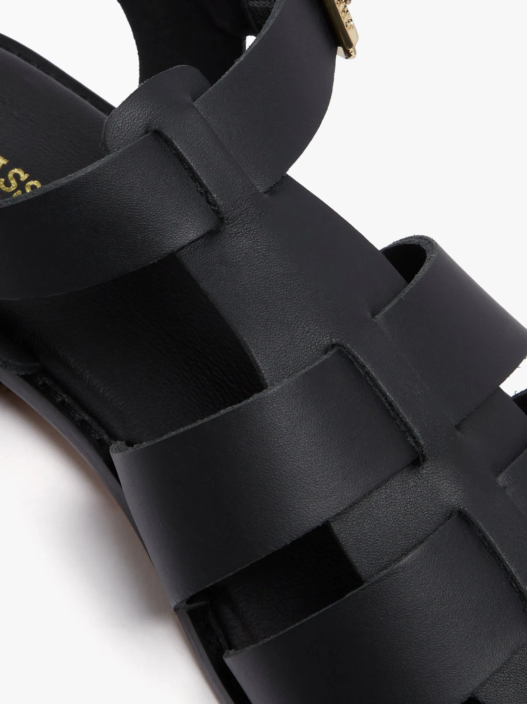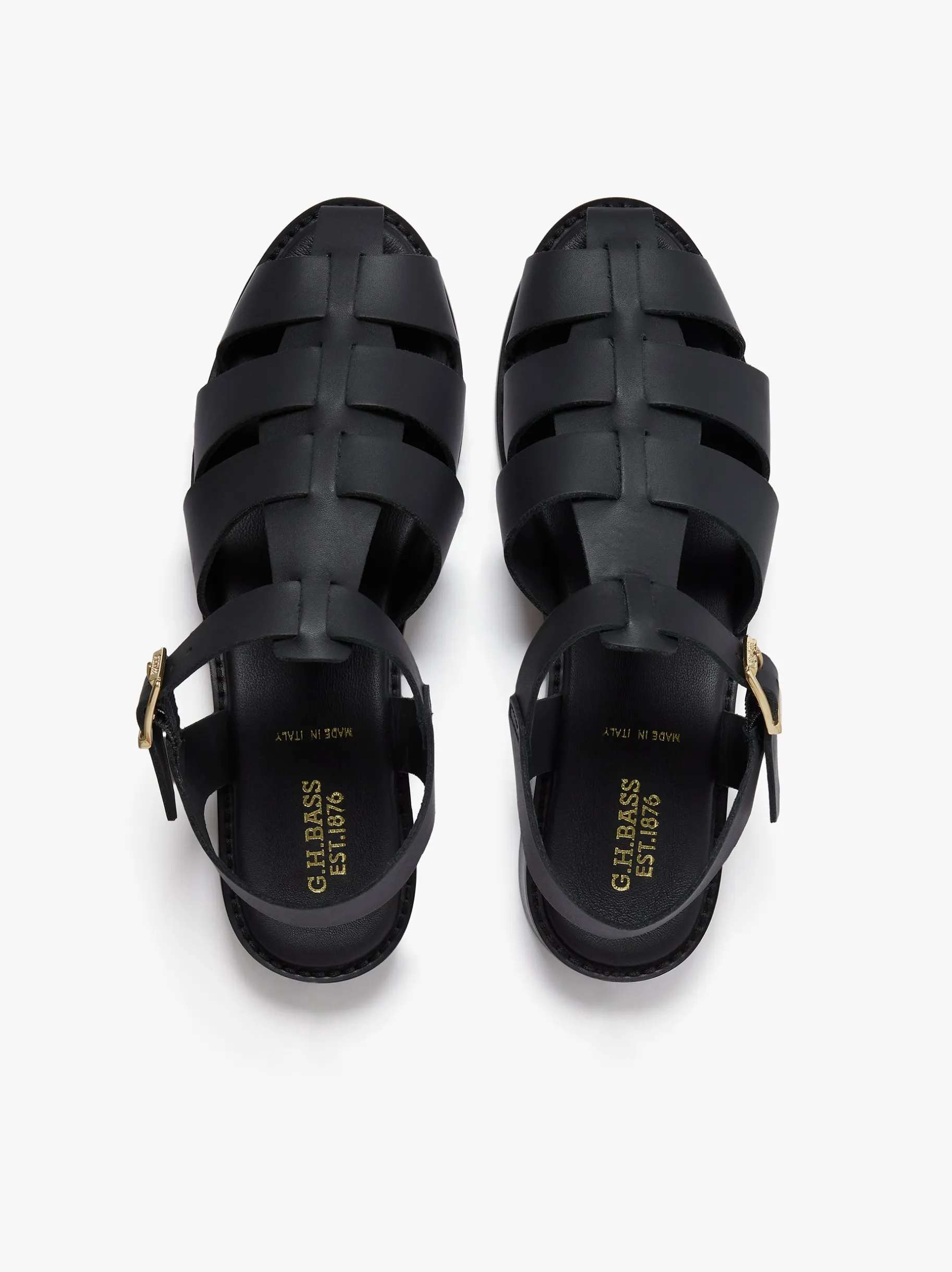 The Amelia fisherman sandal is a versatile women’s statement sandal that can elevate even the simplest of outfits. Crafted from smooth black vachetta leather, these sandals are a combination of style and function. The adjustable strap with G.H.BASS gold-branded buckle adds a sleek touch, while the soft leather lining and flexible sole are designed for comfort. A rubber heel tap promises enhanced durability and stability. Style them with wide-leg trousers and a structured blazer for an urban-chic vibe or wear with a bold printed sundress for a more edgy summer look.