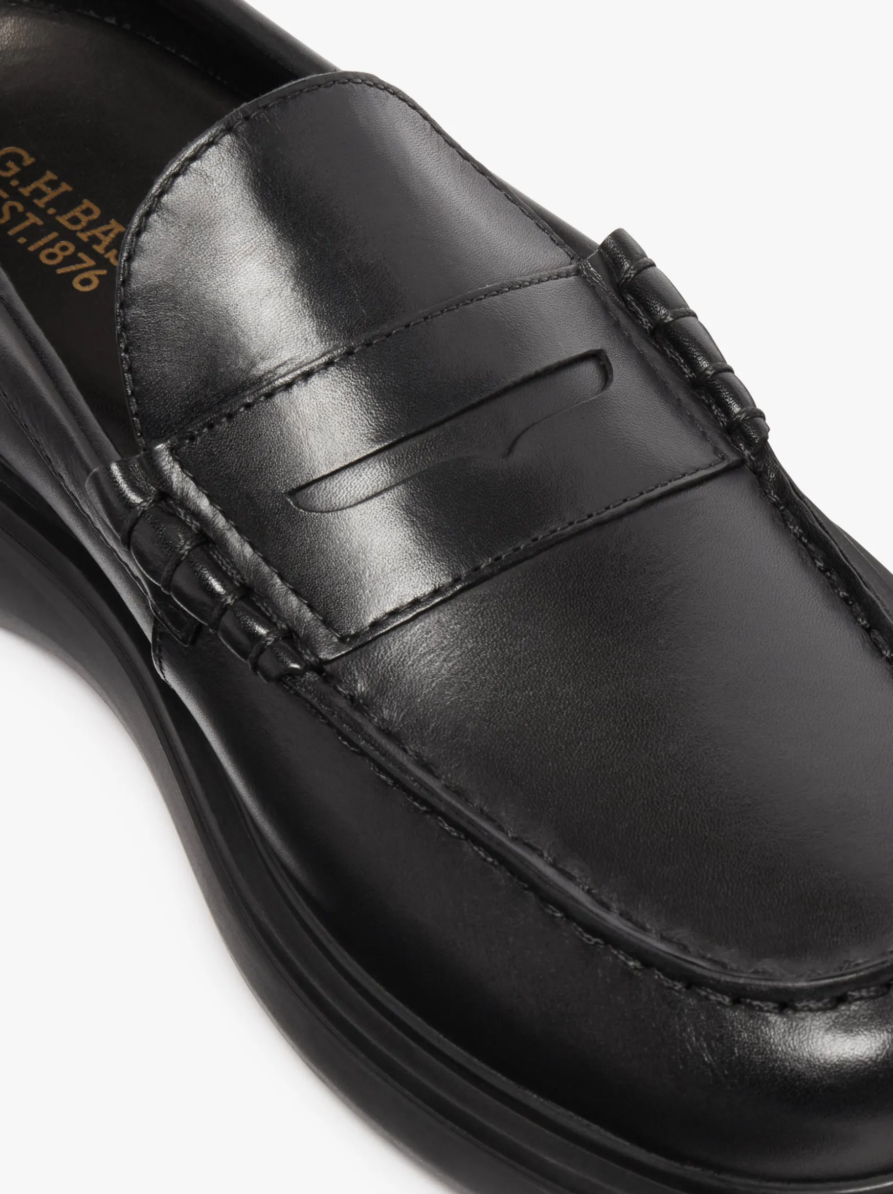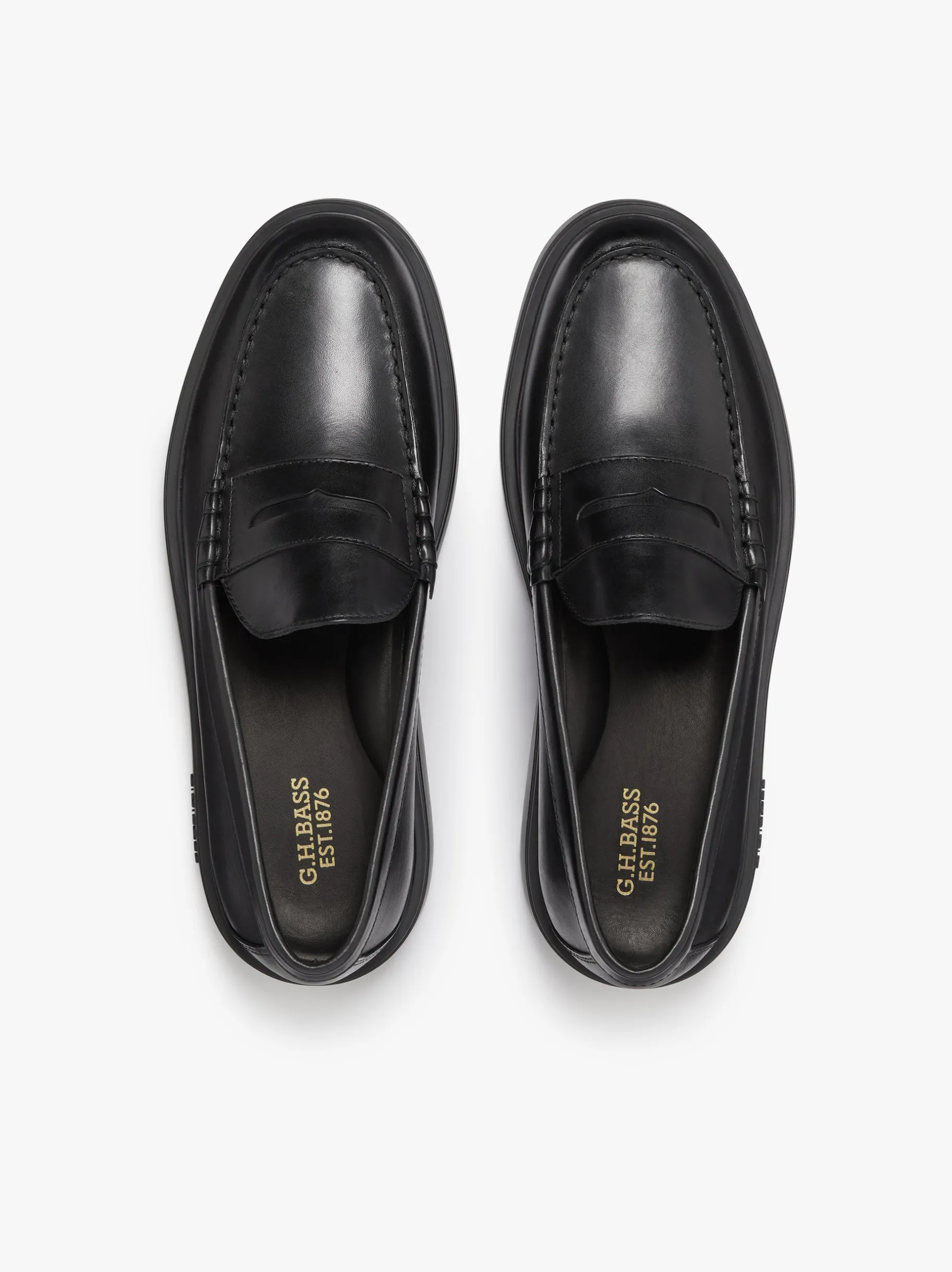 Meet the Bosco Cupsole Penny Loafers in classic black leather, where timeless G.H. BASS craftsmanship meets modern innovation. This contemporary take on the iconic penny loafer pairs a sleek, hand-sewn leather upper with a lightweight and flexible rubber cupsole. Designed for effortless all-day wear, the cushioned footbed and soft leather lining provide premium comfort. A smart alternative to the traditional loafer, the Bosco Cupsole combines the polish of heritage design with the ease and comfort of a trainer, perfect for today’s versatile wardrobe.