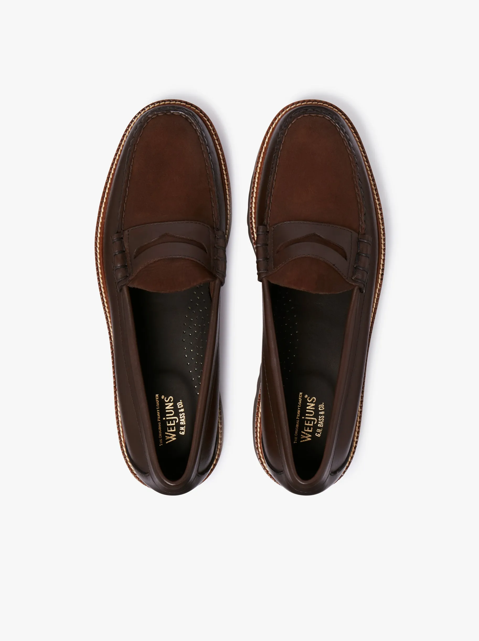 the newest Weejuns 90s profile comes in the softest full grain leather and in a beautifully rich chocolate shade. This easy-going style is reinforced with a lightweight EVA lug outsole. Handcrafted with the construction techniques with inbuilt comfort. Made in El Salvador. A versatile loafer to pair with the navy contemporary suiting or dark blue jeans and blazer combinations.