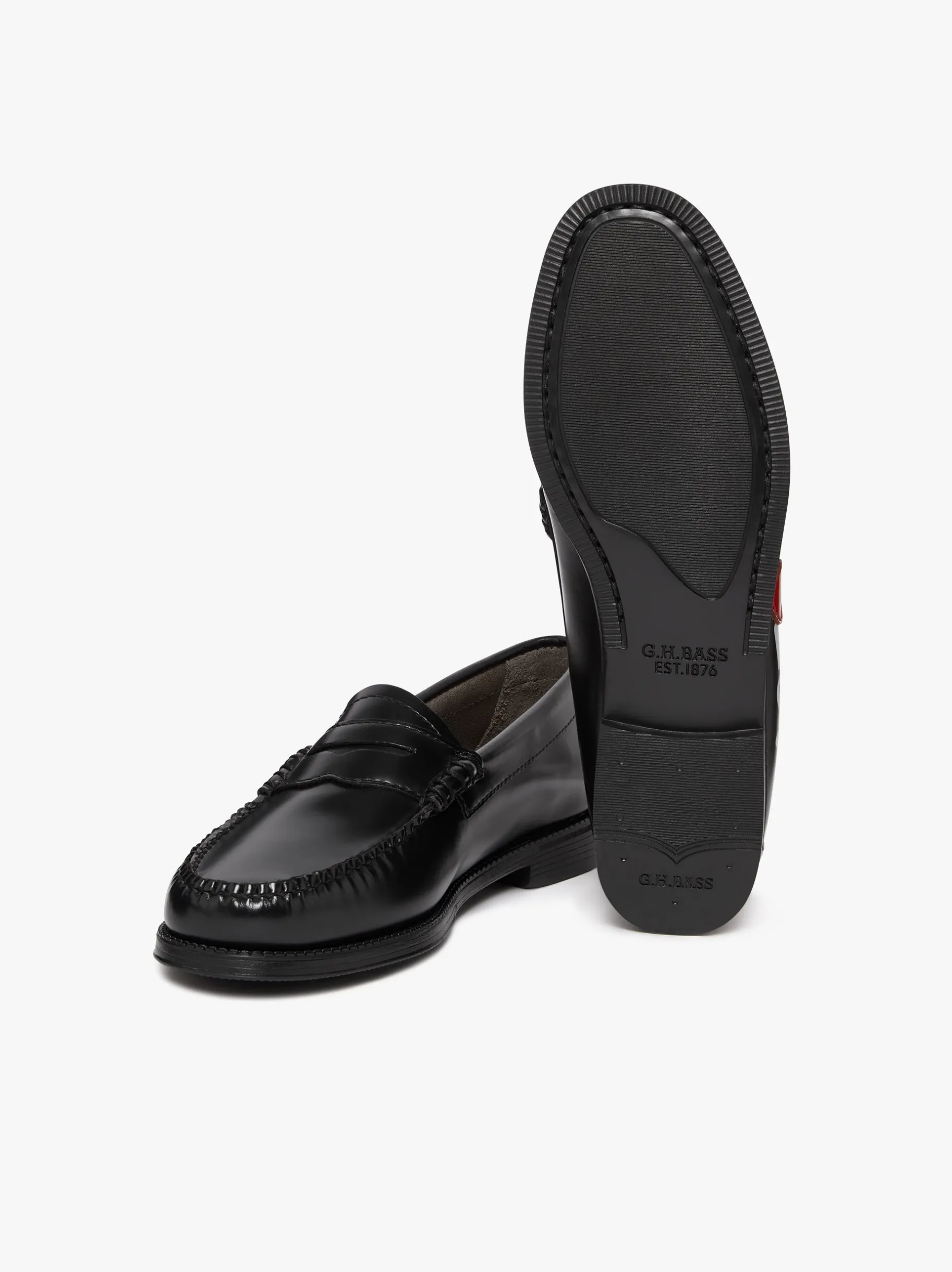 Add a little love to your walk with the Easy Weejuns Penny Love Note Loafers in Black Leather. Crafted by hand in polished black leather, these playful loafers feature a screen-printed red heart and the word “love” for a charming, whimsical finish. Lightweight, unlined, and cushioned, they combine heritage craftsmanship with modern comfort. Durable, water-resistant rubber soles make them perfect for all-year-round wear. Pairing with everything from tailored trousers to casual denim. A classic women’s penny loafer with extra love and extra charm.