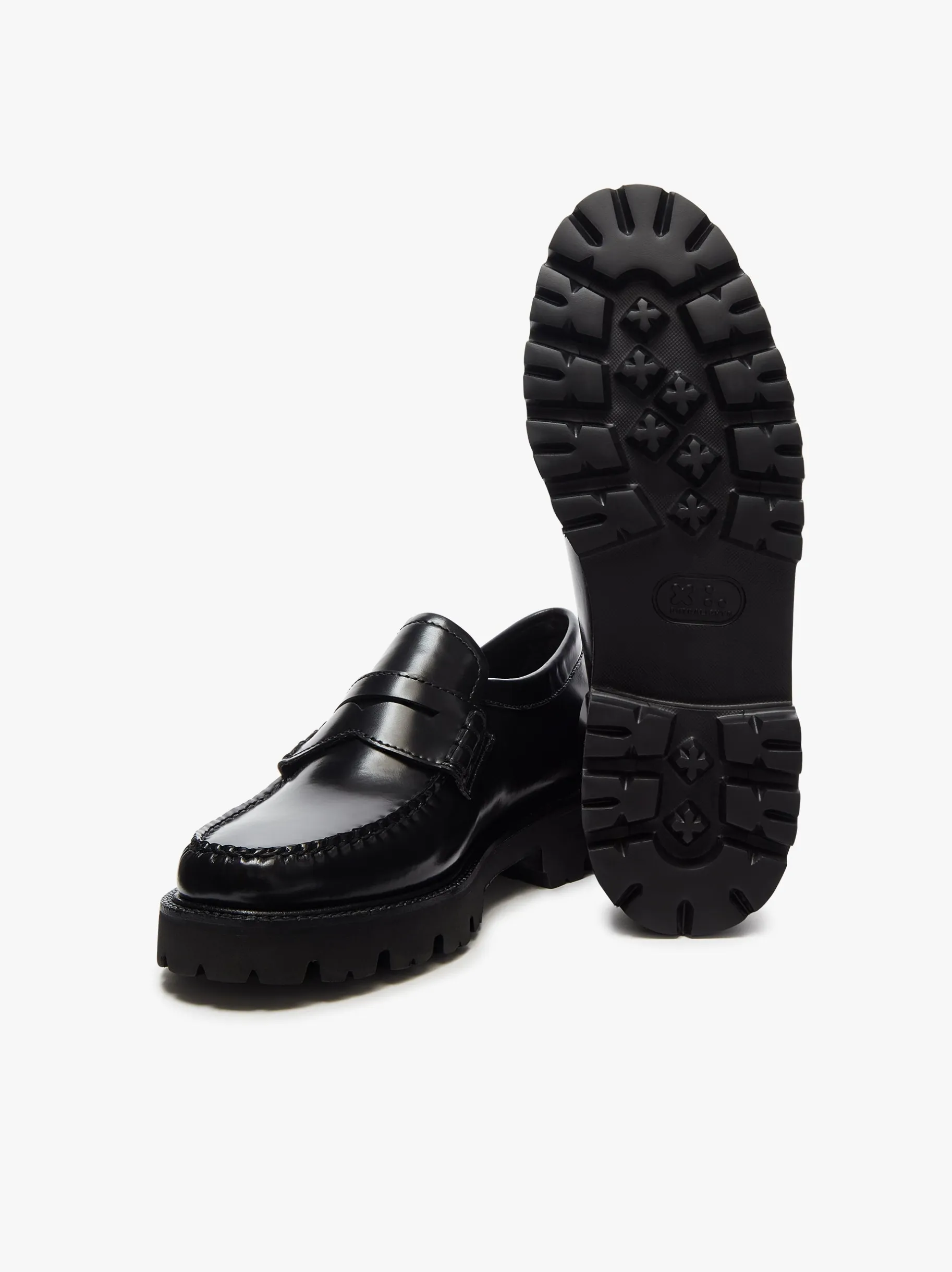 The Weejuns Grace Super Lug Penny Loafers are hand-crafted from sleek, high-shine black leather. Sleek up top, chunky underneath, these loafers are designed to make a statement. Hand-stitched using fray-resistant waxed thread, which not only enhances the shoe’s durability but also adds a refined finish to the seams, highlighting the expert craftsmanship and attention to detail that G.H.BASS is known for. Set on a lightweight, shock-absorbing sole that adds height, grip and a fashion-forward silhouette, the Grace Super Lug is a true statement shoe. Pair with wide-leg denim and a structured blazer for an off-duty style.