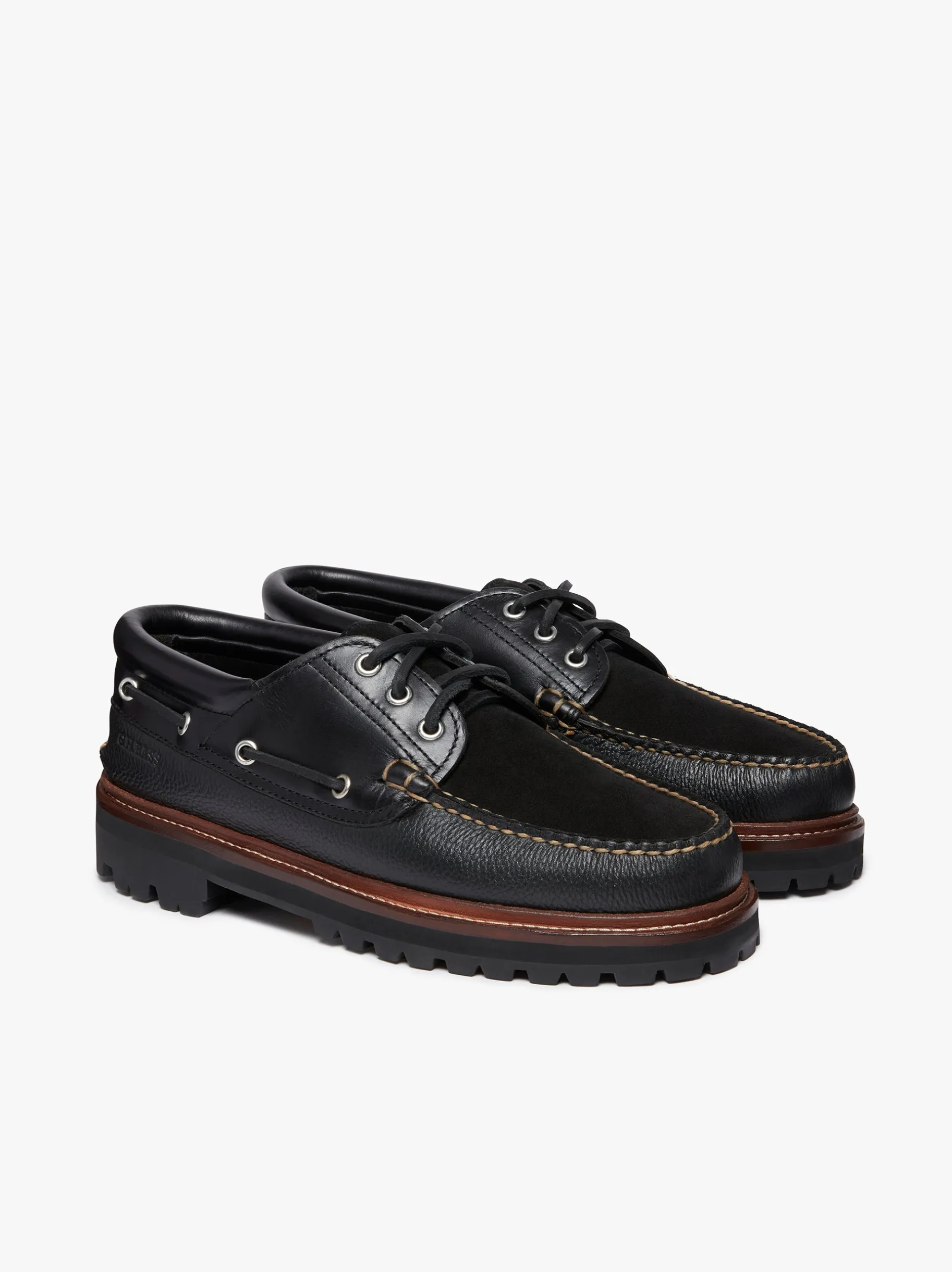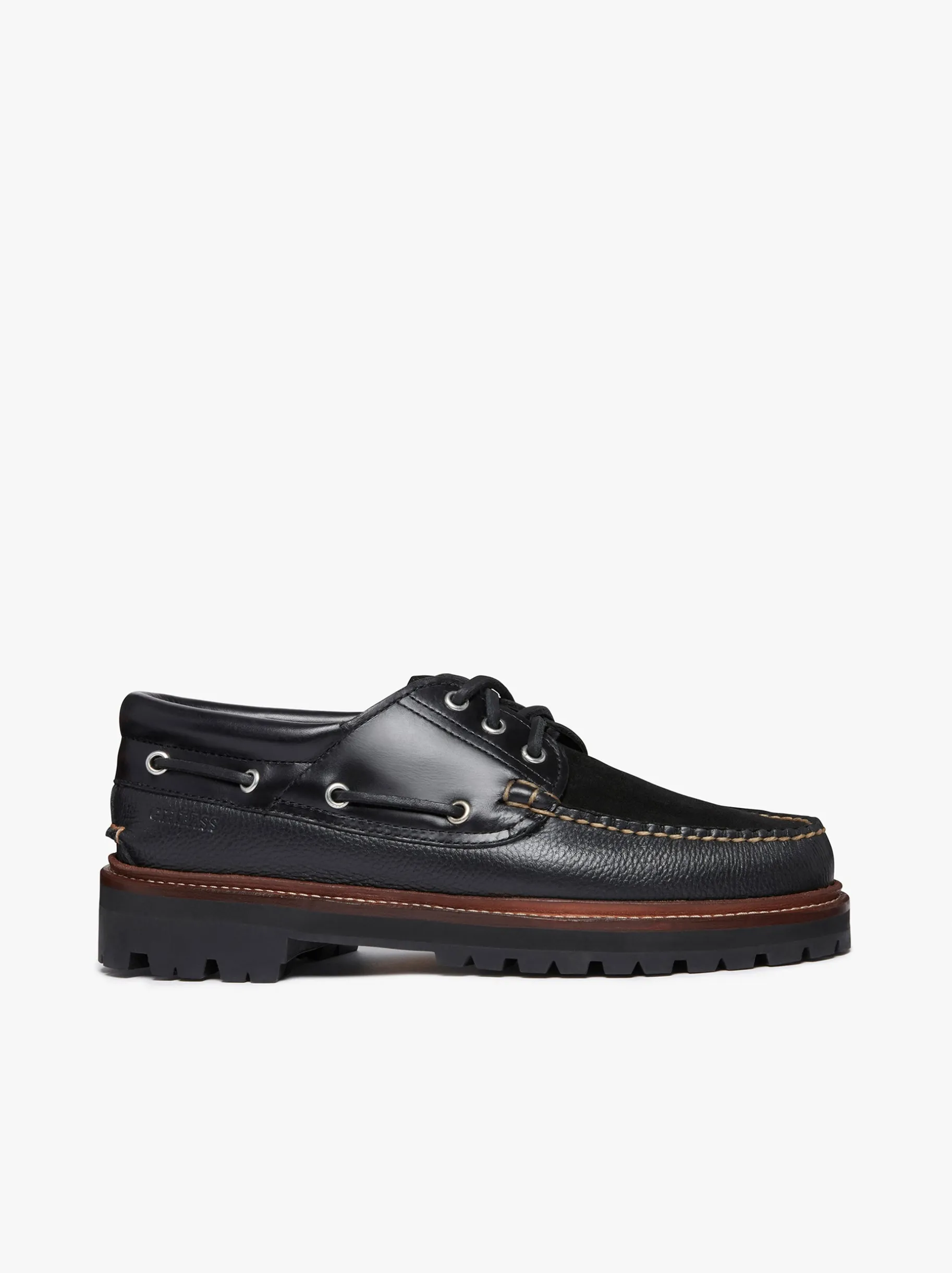 The 1876 Camp Moc, handsewn with contrasting thread using our moccasin construction techniques, pioneered since the company’s founding. Designed with a mixture of leathers and suede the shoe rests on a vibram rubber lug sole with a double stacked leather midsole for better grip and an elevated profile. The laces provide a secure and comfortable fit while the storm welt adds an extra layer of durability. A branded woven label sits upon a premium insole that has been made to cushion and support the wearer. The 1876 Camp Moc is not just a shoe it is a heritage piece that embodies exceptional craftsmanship. With limited availability, these shoes are made for collectors.