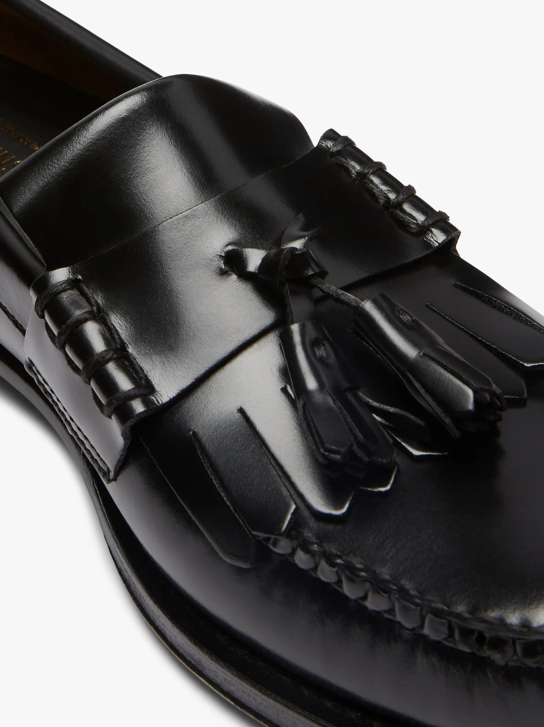 A premium heritage shoe, hand-crafted in El Salvador from supple polished black leather, using original construction techniques from 1936: the Layton II is an ultra-comfortable upgrade on a classic. With added footbed cushioning for extra comfort, this iconically stylish penny loafer features a tassel and matching fringe effect that can be easily dressed up or down without being too formal.