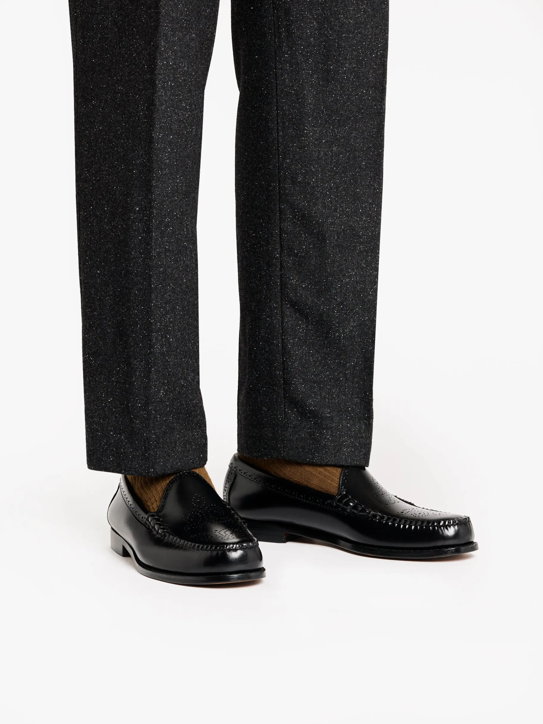 A modern classic with traditional brogue detailing, the Weejuns Venetian Brogue Loafers offer a stripped-back, yet textured silhouette that beautifully contrasts with their black, polished leather uppers. More than just a smart finish to both casual and formal wear, they also feature plush cushioned insoles, breathable unlined interiors, and a hand-polished leather sole for a sleek finish. Style these men’s loafers with tartan suiting or with slim fit denim jeans and a fine knit.