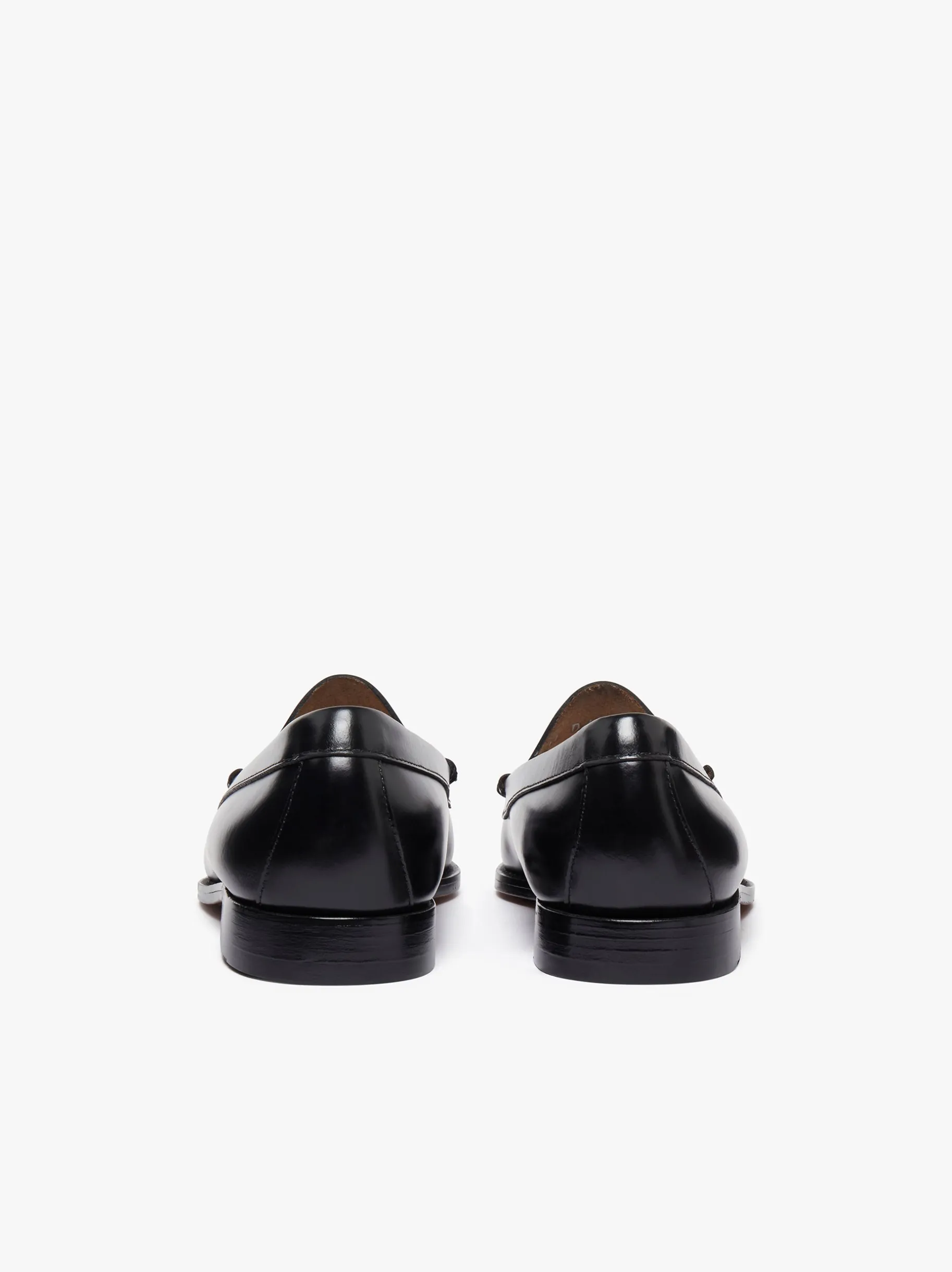 The Whitney Venetian leather loafers are elegant and versatile take on our classic Penny. Designed with a gold in sock emblem, an unlined interior for comfort, reliable welt stitching, and a sturdy heel on a leather sole, these loafers are finished with a subtle logo on the bottom sole. These sleek minimalist loafers are perfect for any setting with an easy slip-on design suitable for casual and formal wear. The polished black leather makes it a smart option for work, in a classic combination of high-waisted trousers and a cream silk blouse.
