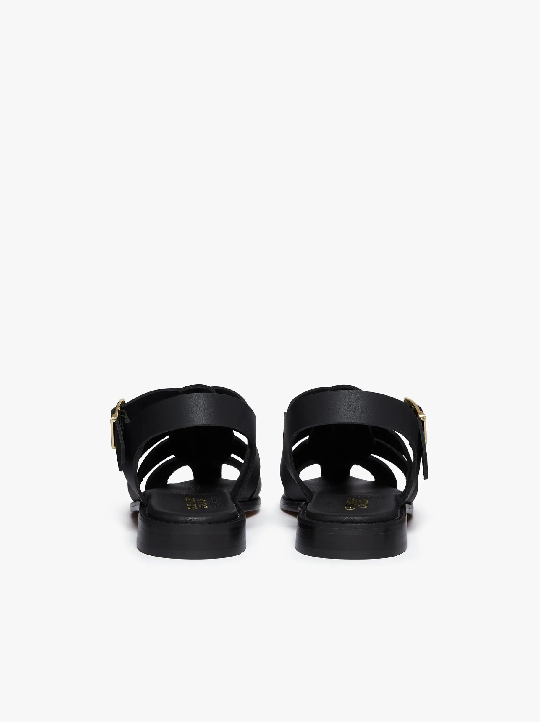 The Amelia fisherman sandal is a versatile women’s statement sandal that can elevate even the simplest of outfits. Crafted from smooth black vachetta leather, these sandals are a combination of style and function. The adjustable strap with G.H.BASS gold-branded buckle adds a sleek touch, while the soft leather lining and flexible sole are designed for comfort. A rubber heel tap promises enhanced durability and stability. Style them with wide-leg trousers and a structured blazer for an urban-chic vibe or wear with a bold printed sundress for a more edgy summer look.