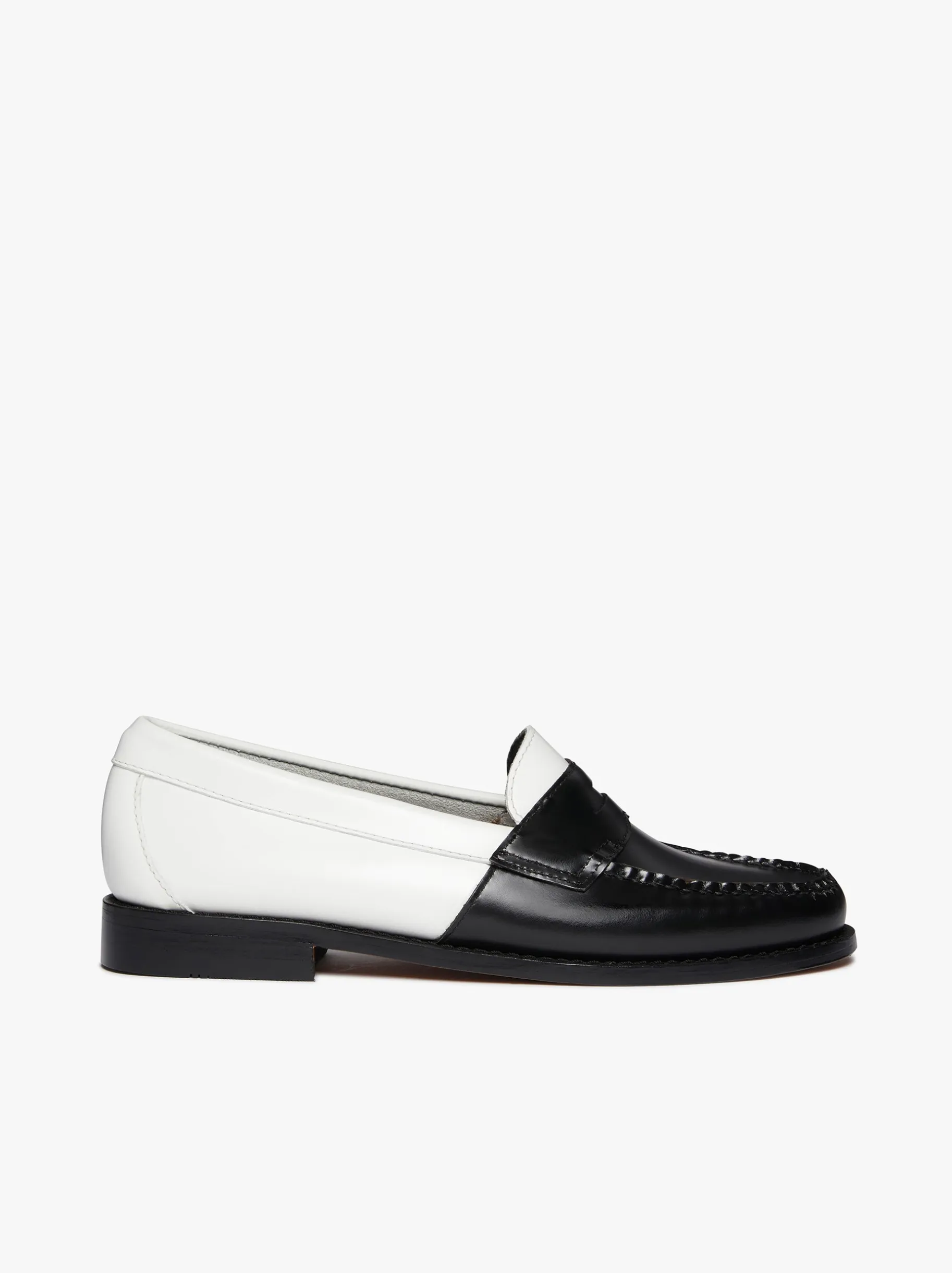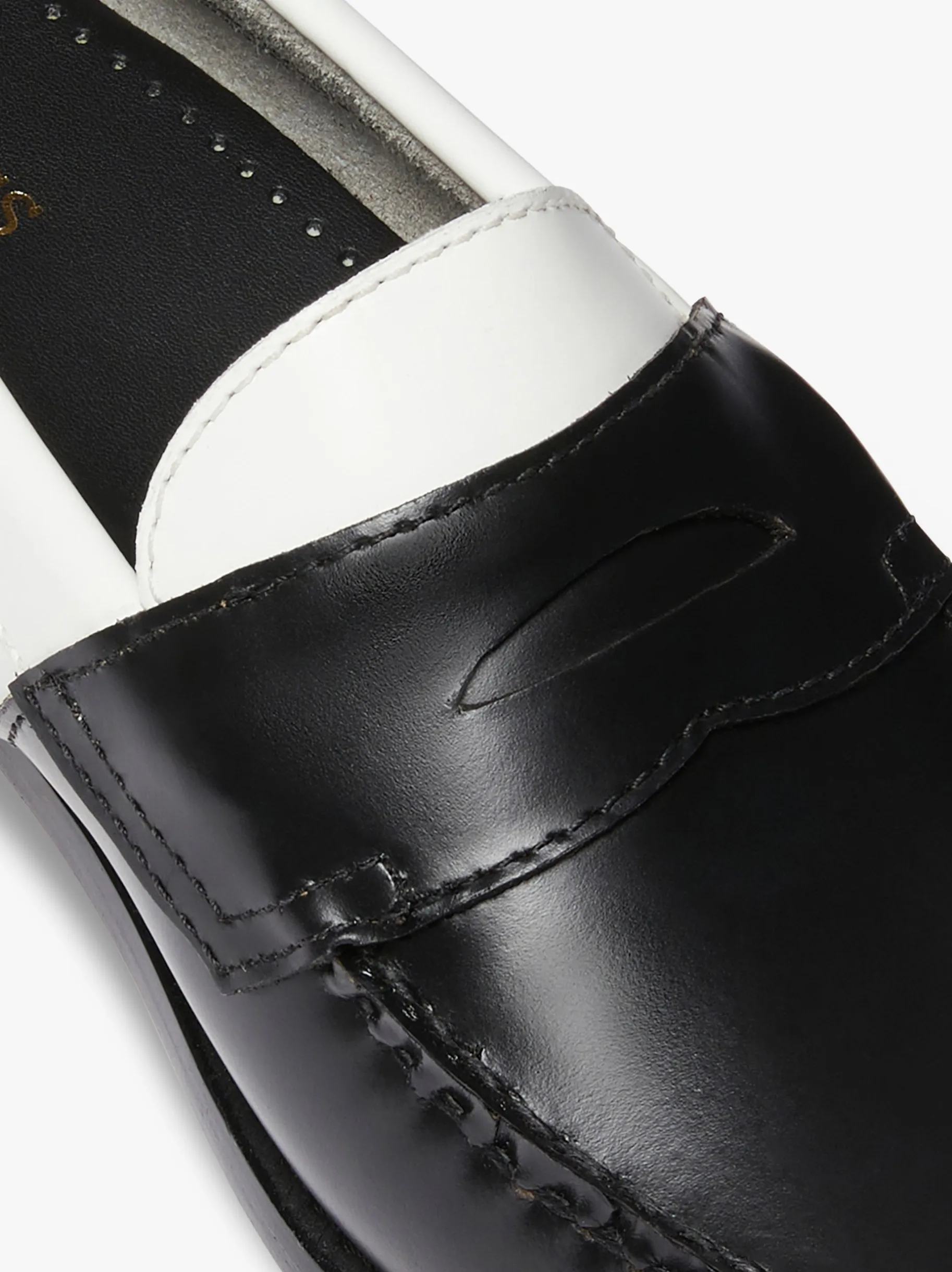The Weejuns Two-Tone Penny Loafers are constructed from premium black and white leather. Striking two tone loafers have been favoured by the fashion-forward, musicians, artists, and those who appreciate a bold contrast and playful spirit. The leather sole is hand-sewn with welt stitching, whilst the dual density foam cushioning ensures long lasting comfort. Adding a layer of durability, is the rubber-capped heel adds durability, these versatile slip-ons are perfect for a variety of events. Style them with anything from a formal dress to casual culottes and a tank top.
