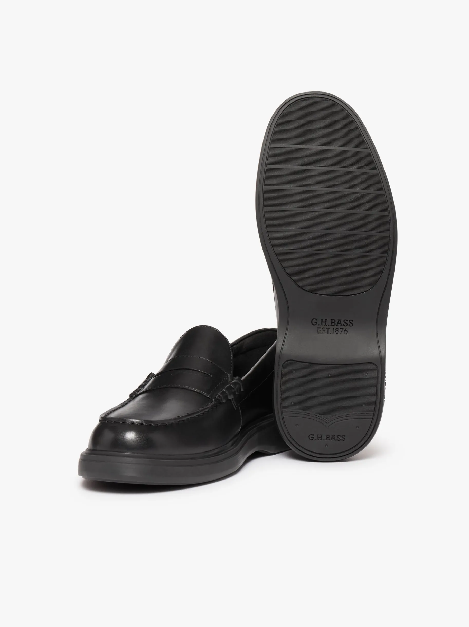Meet the Bosco Cupsole Penny Loafers in classic black leather, where timeless G.H. BASS craftsmanship meets modern innovation. This contemporary take on the iconic penny loafer pairs a sleek, hand-sewn leather upper with a lightweight and flexible rubber cupsole. Designed for effortless all-day wear, the cushioned footbed and soft leather lining provide premium comfort. A smart alternative to the traditional loafer, the Bosco Cupsole combines the polish of heritage design with the ease and comfort of a trainer, perfect for today’s versatile wardrobe.