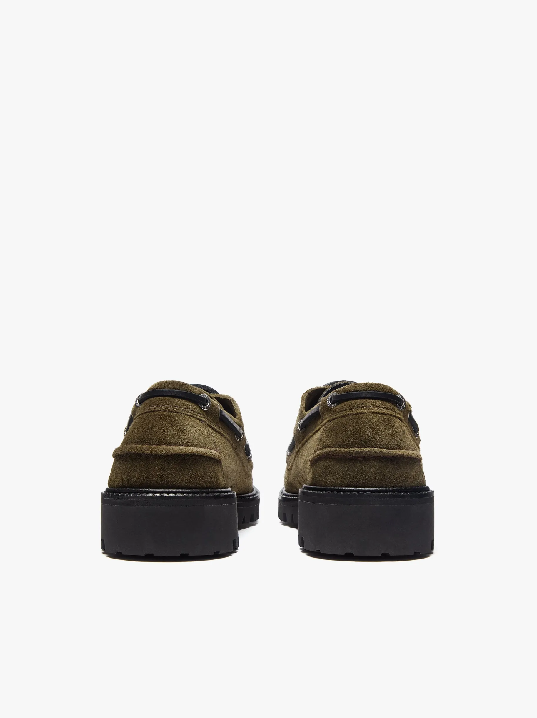 The Ranger Camp Moc in combat suede brings together rugged durability with modern comfort. Made from suede that is ultra-soft yet robust, chosen specifically to balance comfort with resilience. Finished with reinforced stitching, these moccasins are built to last. Strong leather laces offer a secure fit while inside a cushioned insole and soft, breathable leather lining offer day-long comfort and support. A durable EVA lug sole delivers lightweight feel while also offering shock absorption and a high-traction grip. Perfect for any urban terrain, pair with dark denims or utilitarian cargo’s.