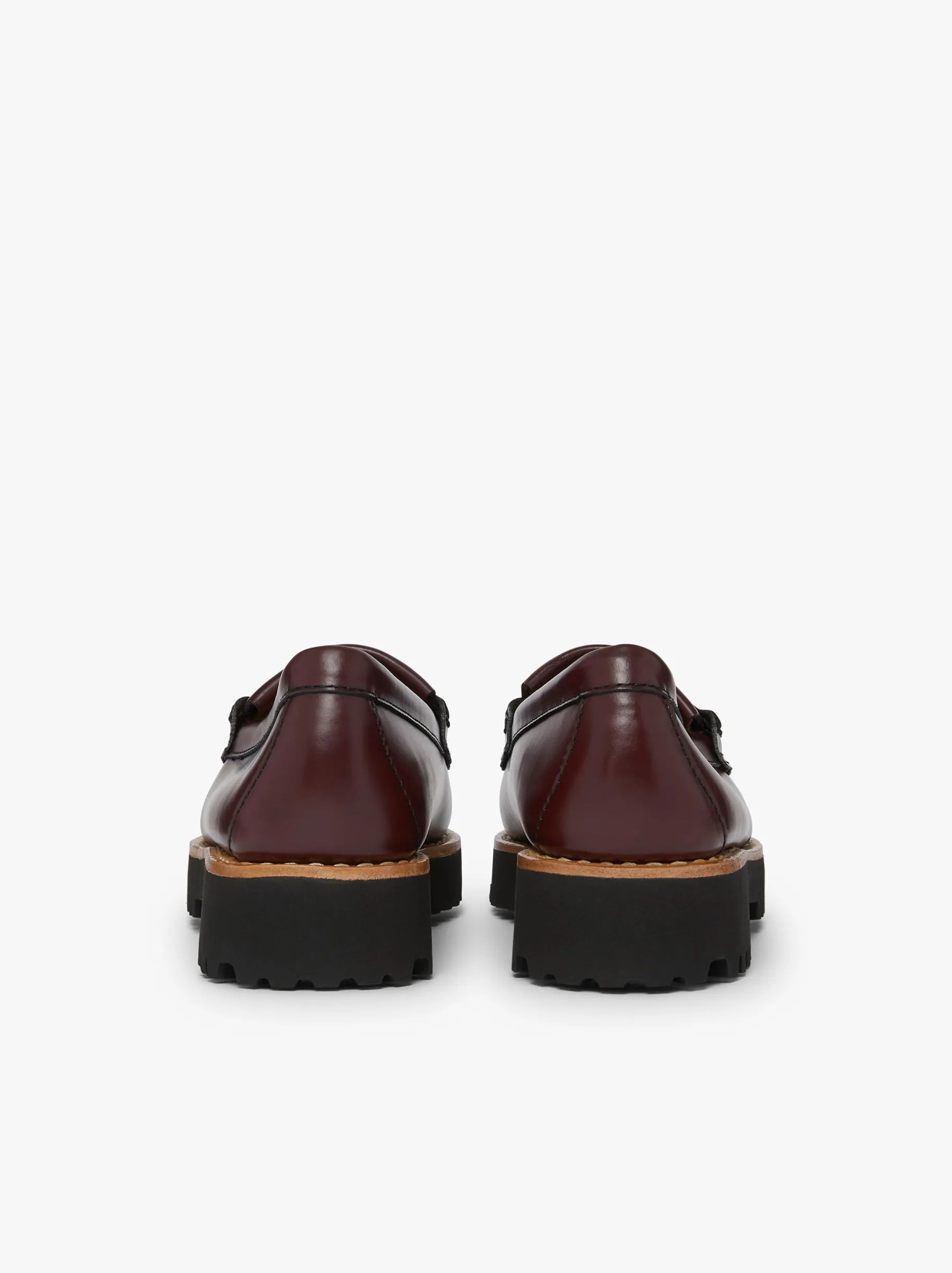 The Women’s Weejuns 90s Esther Kiltie Tassel Loafers in Wine Leather are beautifully hand-crafted from polished wine leather. Adorned with leather tassels and kiltie fringing, the Esther Kiltie embodies understated elegance and lasting quality. Unlined for natural breathability and finished with a cushioned leather insole, it ensures comfort from day to night. Set on the signature 90s-inspired chunky EVA lug sole, this loafer offers lightweight comfort and enhanced durability. Perfectly suited to tailored looks or relaxed denims.