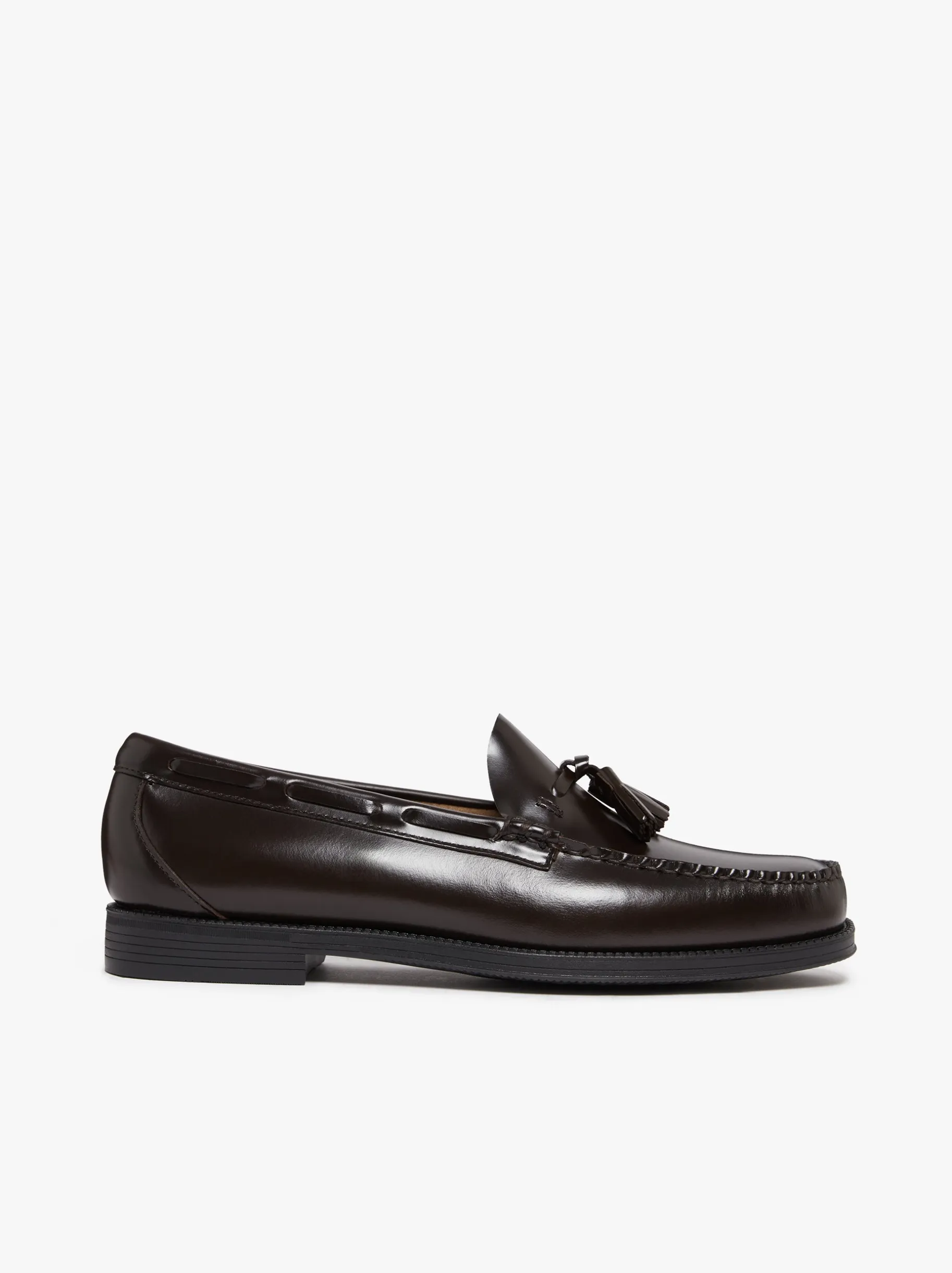The Easy Weejuns Larkin Tassel Loafers in Chocolate Leather are a heritage inspired design. An evolution of the loafer style G.H.BASS first introduced to the world in 1936. Featuring a traditional hand-stitched construction, tonal waxed thread, and signature tassel detailing that nods to generations of timeless style. Unlined for natural breathability yet cushioned for modern comfort, they balance old-world craft with modern ease. Finished with strengthened welt stitching and a flexible all-weather rubber sole, these tassel loafers are built to last. Perfect for pairing with tailored suits, chinos, or well-worn denims. A true classic with all the craft and character that defines G.H.BASS