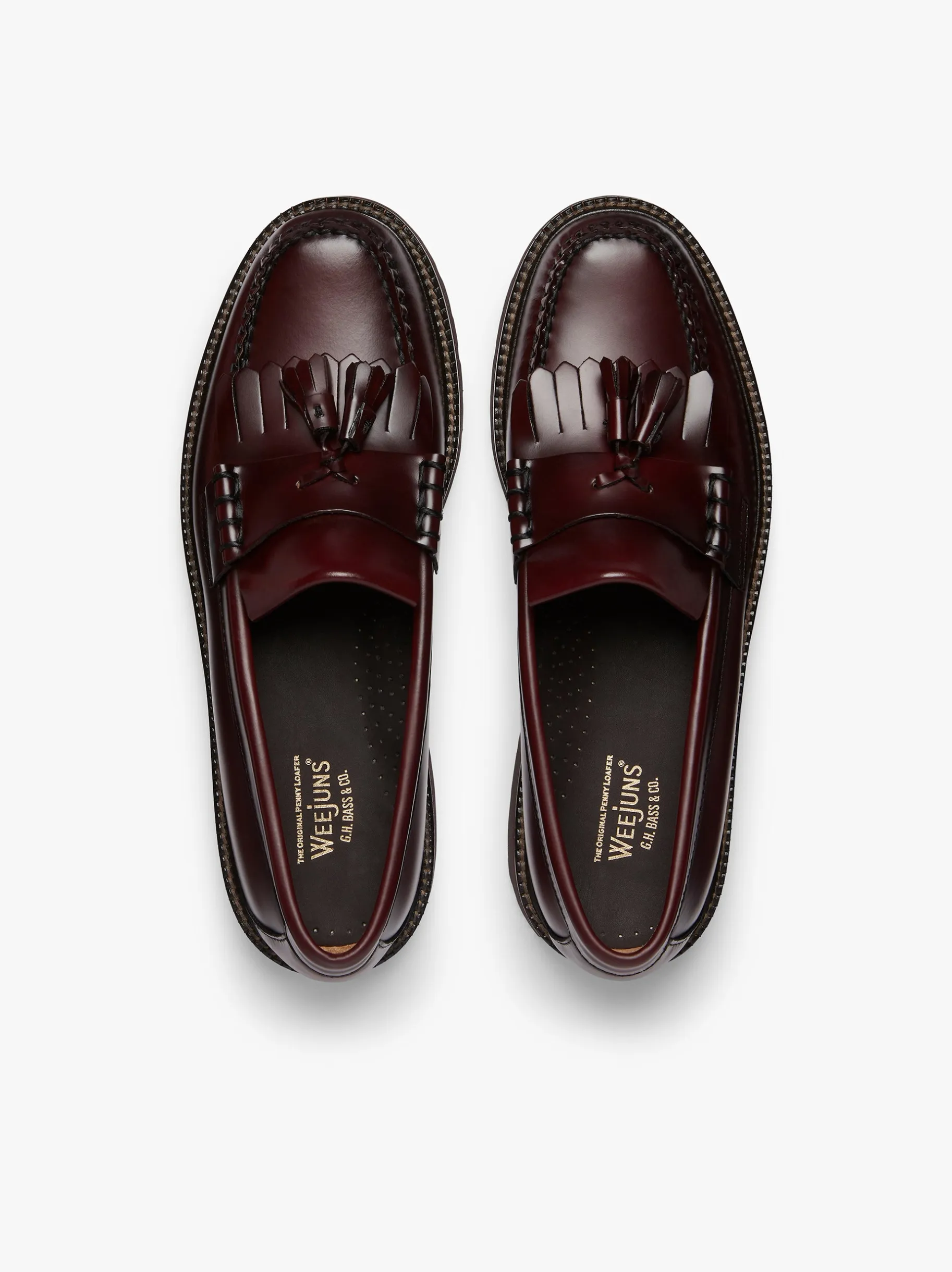 The traditional kiltie tassel loafers is paired with an EVA lug outsole that’s comfortable in rugged terrains for a fresh Weejun’s 90s profile. Hand-stitched in El Salvador from a polished moc leather that shapes to the wearers foot over time, this is a lightweight shoe that adds interest to all-black looks, while matching easily to everyday wear, turned-up denim and ankle socks.