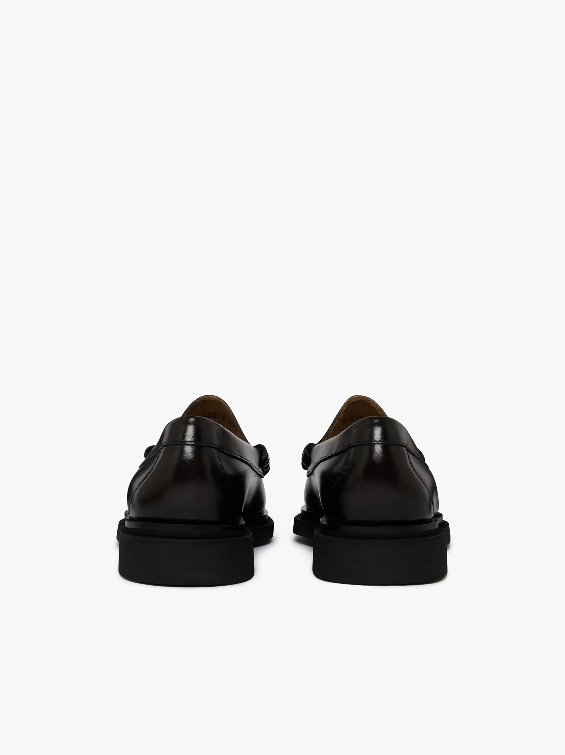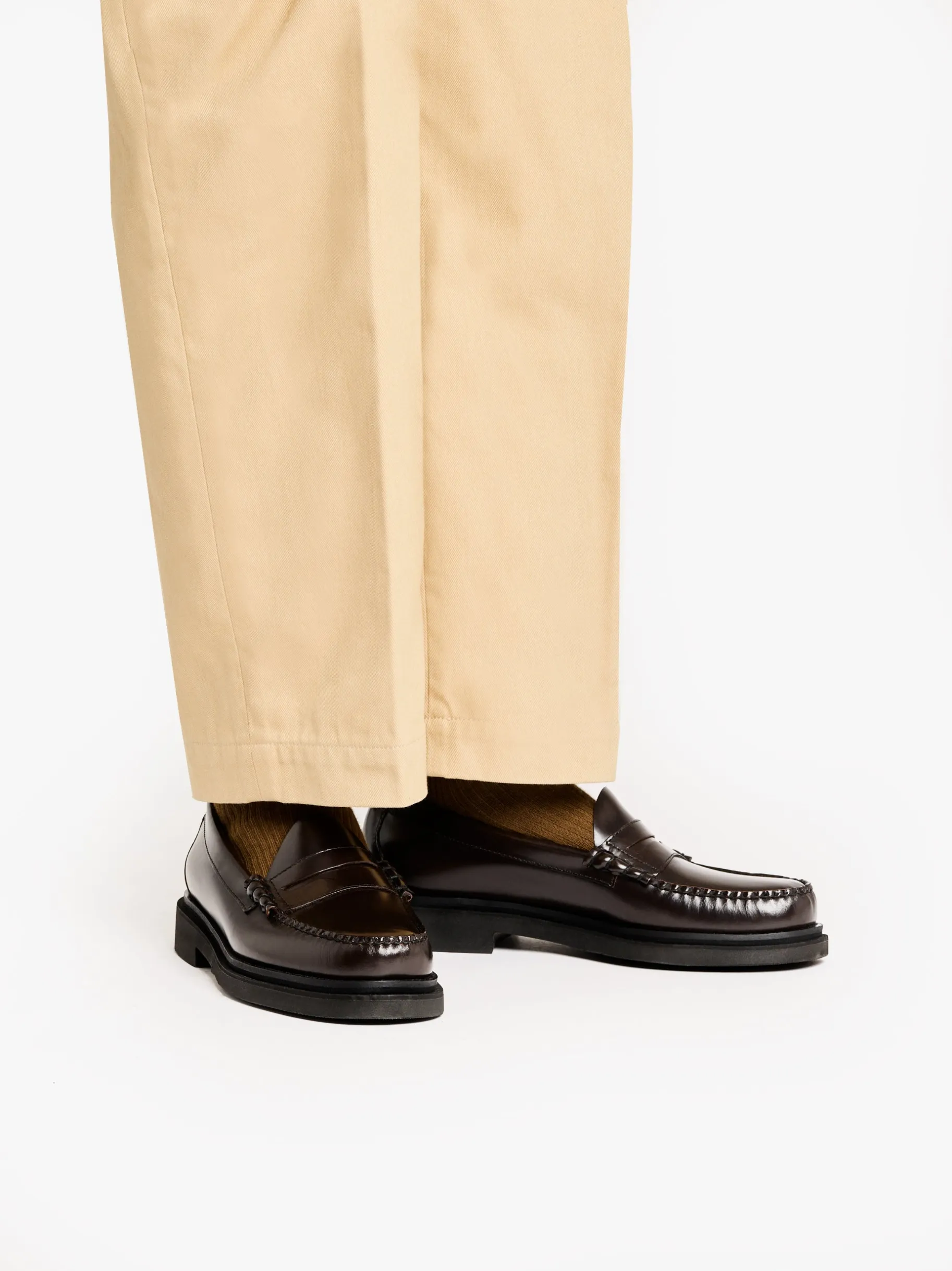 The Weejuns Larson Step Penny Loafers in a smooth chocolate leather features an innovative step welt construction that not only adds subtle height to the loafer but also a new literal edge around the sole of the loafer. Polished by hand, every detail has been carefully considered. A lightweight, EVA water-resistant sole offers enhanced traction and grip. The plush, cushioned insole, designed for optimal foot support and comfort, makes these loafers ideal for day-to-night wear. A versatile addition to any wardrobe, pair these men’s loafers with charcoal tailoring, camel overcoats or forest green corduroy trousers. Whether you’re dressing for work, dinner parties, or city weekends, these loafers deliver understated elegance and all-weather practicality.